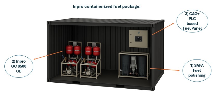 We design systems that can be integrated directly into a container, creating a compact and safe package that includes fuel transfer, preventative filtration and total control of supply.