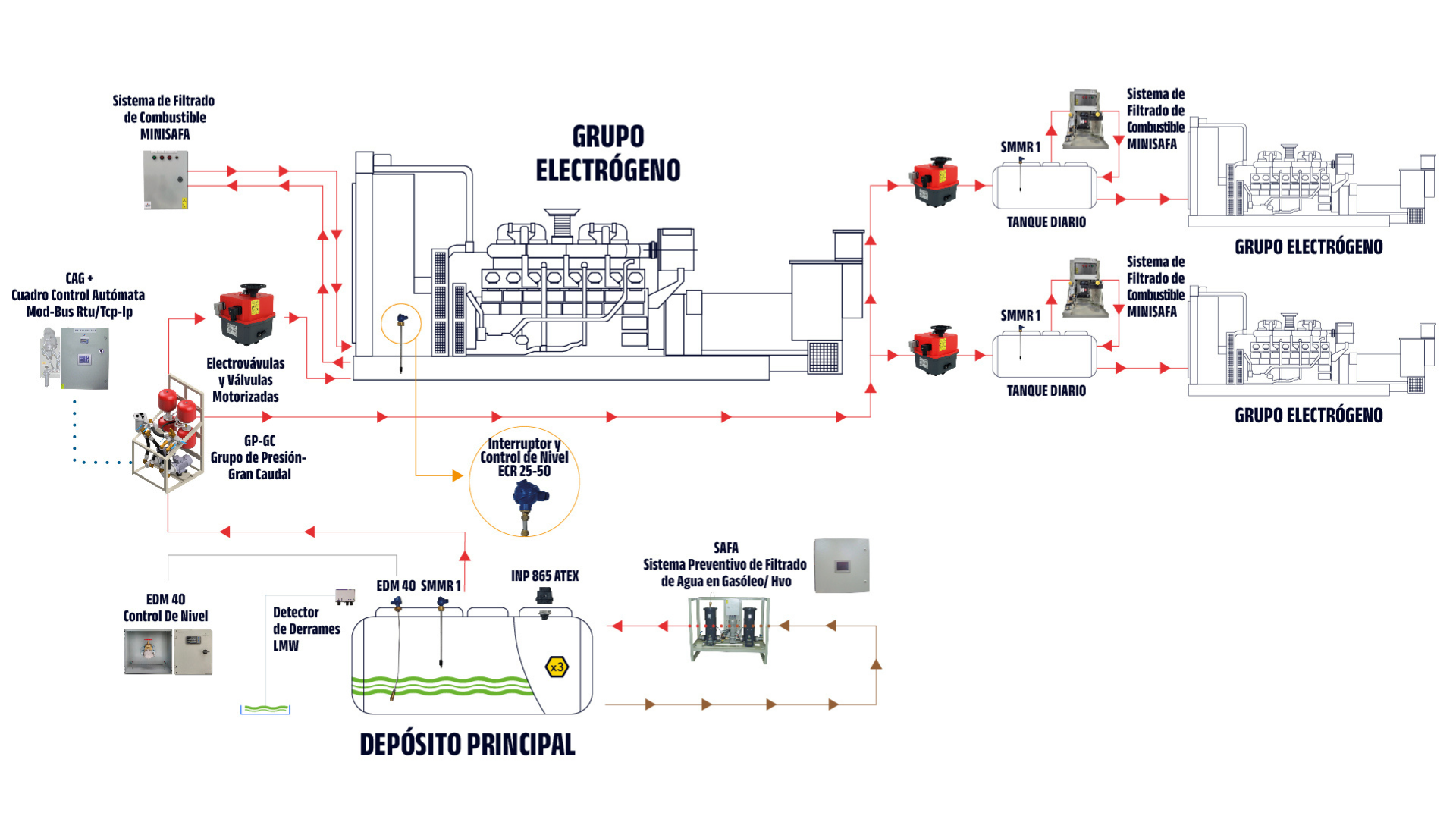 - control del nivel y calidad del combustible